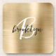 Essa elegante porta copos personalizada apresenta um monograma e primeiro nome em modernos roteiros preto e branco sobre fundo de metal escovado em ouro.
