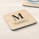 Esta simples e elegante combinação personalizada de bebidas monogramas apresenta um texto clássico de monograma preto que pode ser personalizado com um sobrenome inicial e sobrenome. Um belo presente de manutenção para um novo casal, família ou novos proprietários. Um claro fundo natural de grãos de madeira adiciona um olhar rústico texturizado ao design.