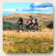 Uma aquarela de três homens pedalando nas colinas galesas.
