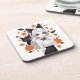 Mulher de anime com gato preto e abóbora de Halloween. Folhas de outono amareladas. Esqueça a vassoura... vou entrar no Halloween com o meu gato.