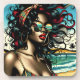 Porta-copo Mulher retrora na arte Pop do estilo de banda dese