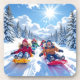 Uma porta copos de Natal adorável com uma cena de inverno adorável com crianças a dormir alegremente na colina.
