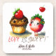 Casal divertido de ilustração com aquarela: morango vermelho e maffin com citação O amor é doce