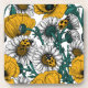 Padrão de vetor sem costura feito com margaridas desenhadas à mão, papoilas e preguiças. Versão amarela e branca.