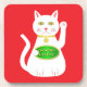 Este fantástico conjunto de portas copos de cortiça apresenta uma imagem design gráfica de um gato oriental de ondas brancas sortudo. O gato tem belos olhos de ouro e está vestindo um medalhão de ouro no colarinho ao redor do pescoço. O gato tem orelhas rosadas e sussurros. Este gatinho bonitinho está segurando um token de ouro com uma entrada de jade verde e uma mensagem no texto de ouro que diz "Boa Sorte".