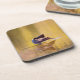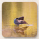 Foto de um ganso canadense se aliciando em uma seção rasa de um lago. O equilíbrio perfeito do ganso é refletido de volta na água, como é a ponta da pena que agarra suavemente a água. A paisagem circundante está refletindo as cores do Springtime na superfície da água. As ondulações de matizes amarelas, verdes e marrons espalham-se pela superfície do lago.