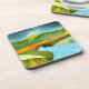 Cena de abstrato de um rio que passa por uma ponte de pedra com colinas rolantes e uma estrada de ouro em cores e texturas ousadas.