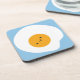 Caracterizando um ovo frito feliz bonito em um fundo azul.