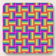 Este trabalho de arte apresenta blocos coloridos de arco-íris em um padrão divertido de neon.