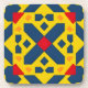 Um design geométrico abstrato vívido apresentando tons vibrantes de amarelo, azul e vermelho formando um padrão simétrico. Perfeito para fundos artísticos, projetos decorativos e inspirações de design gráfico.