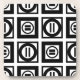 O padrão geométrico preto apresenta quatro quadrados pretos com espaço branco entre eles. Os dois quadrados grossos diagonalmente opostos contêm cada um um um círculo preto fino com um dentro de signo grosso igual. Por outro lado, os dois quadrados finos contêm cada um um um círculo preto espesso que toca as arestas do quadrado com um dentro de sinal fino vertical igual. O branco é transparente, então você pode mudá-lo se quiser. Basta clicar no botão "Personalizar!" e selecionar uma "Cor de fundo impressa" na barra lateral. Quando terminar, clique em "Adicionar ao carrinho" para comprar o design personalizado. Imagem criada digitalmente. Copyright © 2014 Claire E. Skinner. Todos os direitos reservados.