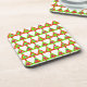 Beba coasters com as minhas árvores de Natal em verde e vermelho com decorações redondas coloridas.