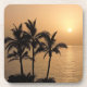 Silhuetas de palmeiras contra o céu do pôr do sol.