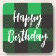 Um legal design de xadrez verde com as palavras Feliz Aniversário.