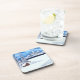 Uma porta copos com uma bela cena de inverno, incluindo montanhas nevadas, cabana rústica e neve coberta por vergreens. Arte original por W.B.