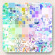 Quadrados multidimensionados em um padrão geométrico. Multicolor em tons pastéis claros. Retro engraçado e divertido.