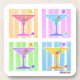 Quatro divertidas, Pop Art Martinis coloridas, com guarnições de oliveira arco-íris contra um pastel de arte retrô, anos 50, em um clássico 'pop-art quad'. Tire proveito dos recursos de personalização para personalizar sua compra com texto ou fotos próprias!