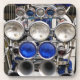 Design fotográfico de um patinete de motor vintage coberto por luzes e chifres.