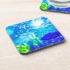 Um item sereno com uma imagem de peixes nadando sob o oceano azul com raios solares brilhando pela água sobre as algas marinhas.