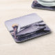 Perfil de um pelicano - o pelicano marrom, na fotografia original de MaeFlowers nesta Porta copos, está deslizando ao longo da água de um canal na costa do Golfo da Flórida. O lado de um barco ao fundo mostra as reflexões cintilantes da água azul. A foto está em tons de azul, cinza macio e castanho, com um toque de amarelo na cabeça do pelicano.