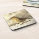Este conjunto de portas copos de cortiça apresenta um animado e alegre Pine Siskin que parece estar a falar embora tenha uma semente de girassol na boca! Ele está parado na neve em um dia ensolarado de inverno iluminado pela luz do ouro.