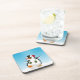 Uma bela ilustração de inverno que apresenta um pinguim desajeitado de bom humor vestindo luvas e protetores auriculares andando na neve.