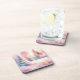 Bonito porta copos rosa das maravilhas do inverno. Uma floresta rosa com pinheiros cobertos de neve.