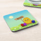 Ilustração de Páscoa bonita, com um pintinho segurando um cartaz de madeira com saudação de Felz pascoa, sentado num campo de flores ao lado de ovos coloridos de Páscoa.
