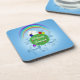 Ilustração da páscoa: planeta Páscoa com ovos coloridos, coelho fofo, borboleta, arco-íris, flores e ornamentos florais sobre fundo azul claro.