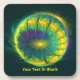 Uma imagem fractal esférica, verde, azul e amarela, segmentada (ou articulada), num fundo verde escuro. Personalize adicionando seu próprio texto.
