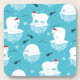 Playful polar bears in Santa hats float on icy blue seas surrounded by igloos, fish, and snowflakes. A cool Christmas favorite.