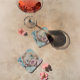 Porta-copo Pop de Arte Retrora Rosa e Mulher do Espaço Azul