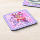 Linda porta copos quadrada ou tapete de mesa, com flores de parede em tons românticos de rosa, lilás e mauve e uma delicada borda lilática pálida, de uma pintura aquosa de Judy Adamson.