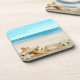 Conjunto de conchas numa bela e brilhante porta copos de plástico de praia para a sua festa. Chapas de papel e guardanapos de festa disponíveis.