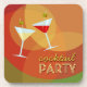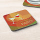 As portas copos feitas sob encomenda da cortiça ajustaram-se para um cocktail, bares, bares ou clubes com ilustração do vetor de dois vidros de cocktail e do texto feito sob encomenda no fundo colorido. Você pode personalizar estas portas copos do partido com seu próprio texto!