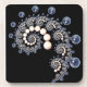 A marfim e as pérolas azuis espiralam dentro de uma espiral sobre um fundo preto.