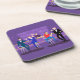 Este design plástico duro retro da porta copos do bar alegre é roxo, kitschy, e totalmente fabuloso! Sentando-se nos barstools modernos do meio século, bebendo seu divertimento, as bebidas cor-de-rosa, estes cavalheiros dapper estão tendo tempo de um ol alegre'. O barman hunky com um bowtie cor-de-rosa já está derramando a seguinte rodada. As silhuetas do licor atômico engarrafam a linha a parede e o dispositivo elétrico claro do estilo de sputnik dos anos 60 do vintage pendura fora ao lado. O único hetero da coisa sobre este bar é o bar!