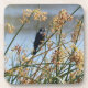 Os juncos altos que cercam esta lagoa fornecem a serenidade e o isolamento para este melro redwinged que basking no sol morno.