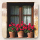 David R. Frazier / DanitaDelimont.com| Europa, Espanha| potes de flores de janela na aldeia de Santillana del Mar, Cantábria, Espanha.