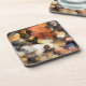 Um design de arte de areia, céu, algas, seixos e água na praia.
