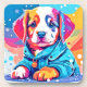 Design de arte colorida e fofa de um filhote vestindo um casaco azul (Este Design feito com IA). Faça a ordem hoje e encare a alegria de Comprar!