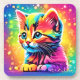 Uma ilustração cativante de um gatinho brincalhão banhado em um vibrante arco-íris de cores, colocado contra um pano de fundo estrelado. Esse trabalho de arte é perfeito para adicionar um toque de magia a qualquer estilo (Este Design Com IA). Faça a ordem hoje e encare a alegria de Comprar!