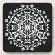 Esta mandala branca senta-se sobre um fundo preto. Parte da coleção Mola Mandala.