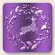 Uma bela porta copos de Natal roxa com um saco feito de diamantes brilhantes, saltando por uma coroa de Natal prateada. Há um fundo roxo colorido e elegante atrás deles. Esta porta copos de renas luxuosa vai certamente adicionar um toque de estilo e elegância à sua mesa de Natal este ano.