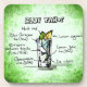 Parte de uma série divertida de designs-guia de barman com receitas de bebida. Este é para um Tahoe Azul feito com curacau azul, tequila, champanhe, cubos de gelo, suco de limão e encharcado com um segmento de limão e folha de menta.