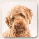 Um retrato de estúdio de um cão de rabisco ouro olhando para a câmera.