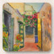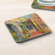 Este conjunto de portas copos decorativas de cortiça apresenta uma adaptação de uma pintura de arte fina de uma pequena rua em Ruas. Croix, Ilhas Virgens, pela artista americana Anna Unterman. A cena brilhante e ensolarada é um motim de cores. Há uma vinha vermelha, rosa e magenta bougainvillea sobre a autoestrada, bem como videiras de chama laranja e outros arbustos e folhas verdes. Os edifícios coloridos são amarelo, ouro, azul e verde. Retirada com permissão da propriedade de Anna Unterman. Todos os direitos reservados.
