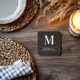 Este conjunto de cores de bebidas personalizadas simples e elegante apresenta um texto clássico de monograma branco que pode ser personalizado com um sobrenome inicial e sobrenome. Um belo presente de manutenção para um novo casal, família ou novos proprietários. Uma camada escura de carvão castanho de madeira falsa adiciona um olhar rústico texturizado ao design.