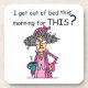 Sair de t-shirt do humor da cama, canecas, cartões, etiquetas, bolsas, ímãs, chaveiro, ornamento, mousepads, travesseiros, Tag da bagagem, e outros roupa e presentes da atitude da manhã para qualquer um que não é exatamente um fã de acordar cedo! Stella em seus nightgown e veste cor-de-rosa pergunta-me "saiu da cama esta manhã para ESTA?".