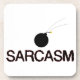Sem sarcasmo. Uma imagem de uma bomba caiu na palavra sarcasmo. Design original.